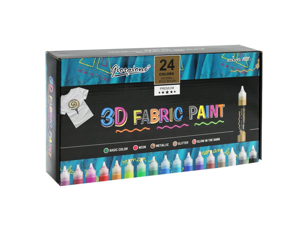 3D farby na textil 30 ml / 24 farieb + 3 štetce