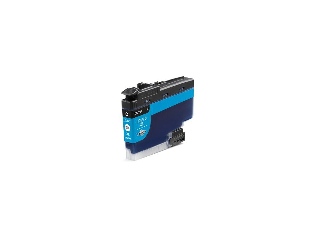 Azúrová atramentová kazeta Brother s vysokou výťažnosťou LC427XLC s vlastnosťami odolnýmiproti blednutiu farieb zaručuje plynulú, spoľahlivú a vysoko kvalitnú tlač.