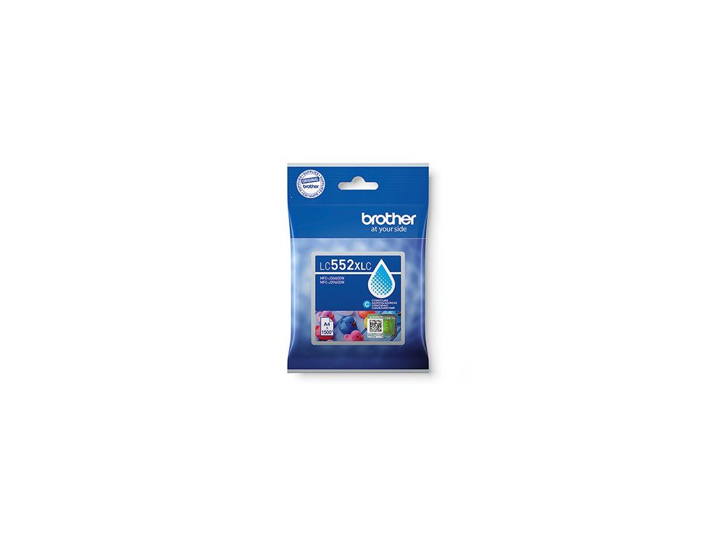 - Vysoko kvalitná originálna azúrová pigmentová atramentová kazeta Brother LC552XLC s vysokou výťažnosťou