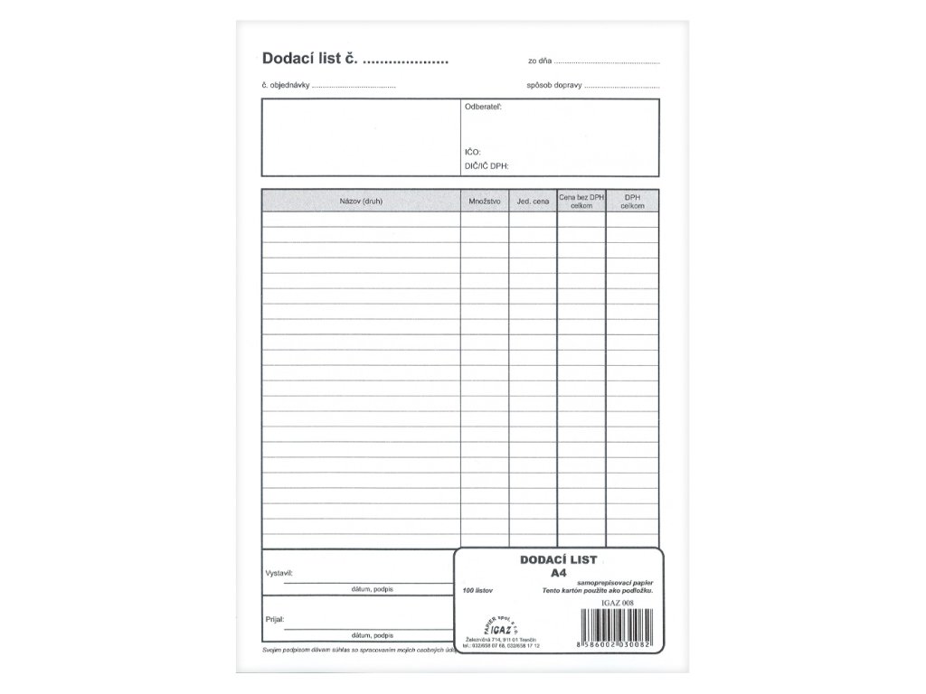 Dodací list s DPH A4, samoprepis /8/ OMIDodatočné parametre