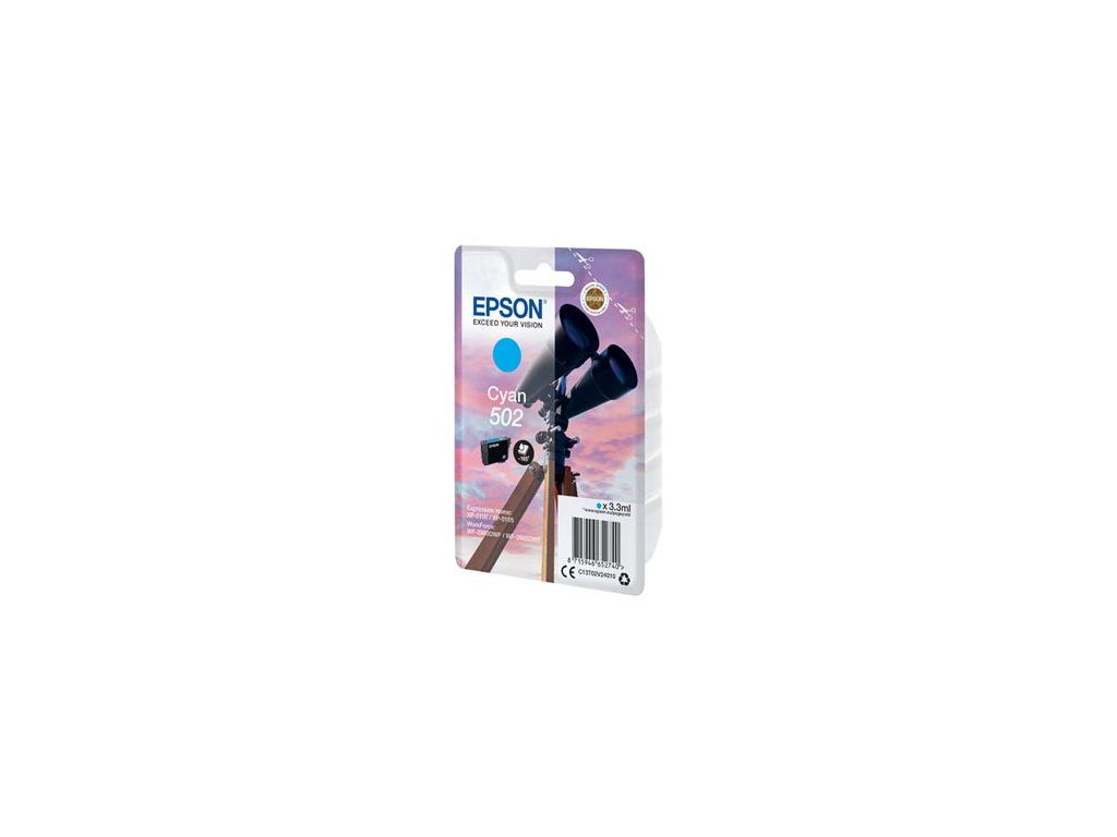 Epson originál ink C13T02V24010, 502, T02V240, cyan, 165str., 3.3ml