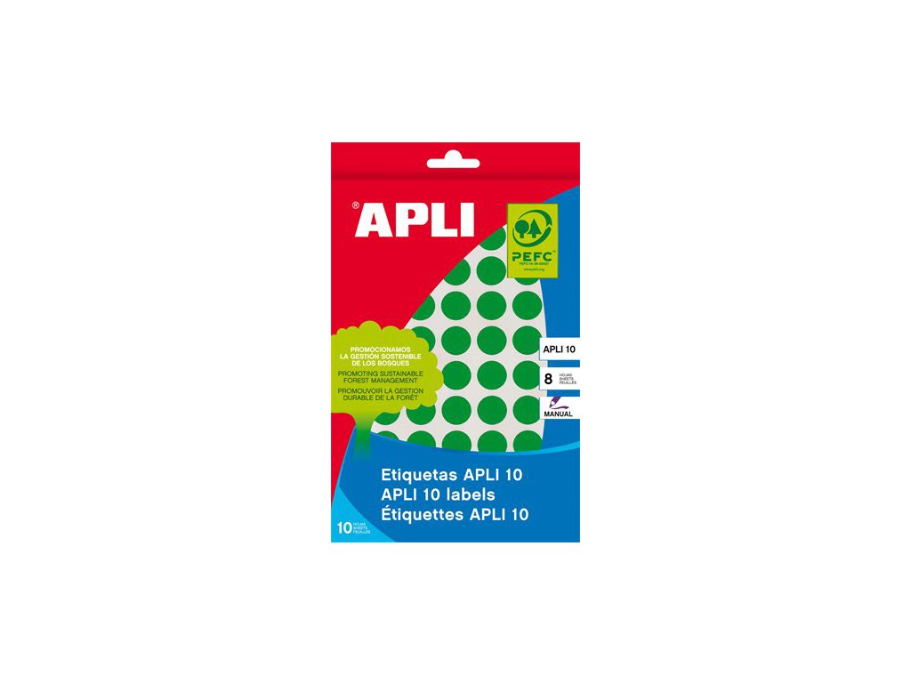 Etikety, okrúhle, priemer: 10 mm, ručne popisovateľné, farebné, APLI, zelené, 1008 etikiet
