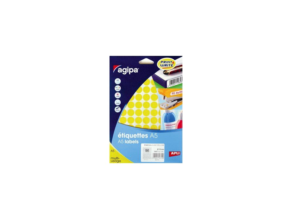 Etikety kruhové 15 mm Agipa A5 žlté