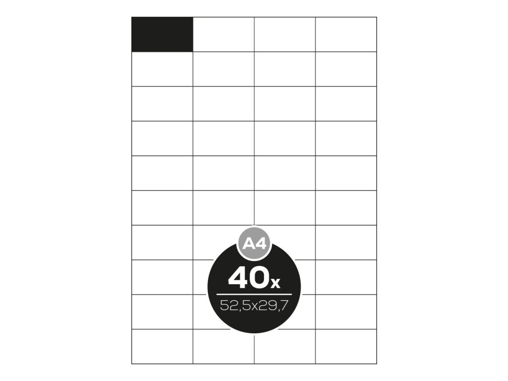 Etikety Top Stick A4/100 ks, 52,5x29,7 mm - 40 etikiet, biele