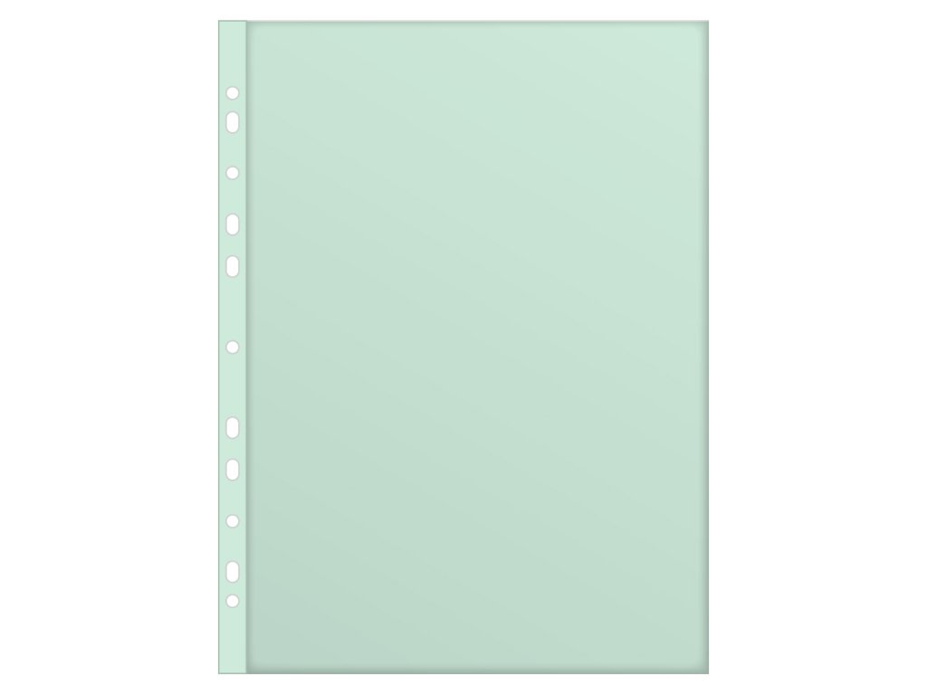 Polypropylénové priehľadné zakladacie euroobaly s hladkou povrchovou úpravou, otvor zhora, s europerforáciou, formát A4, farba zelená, 100 ks v balení.Dodatočné parametre