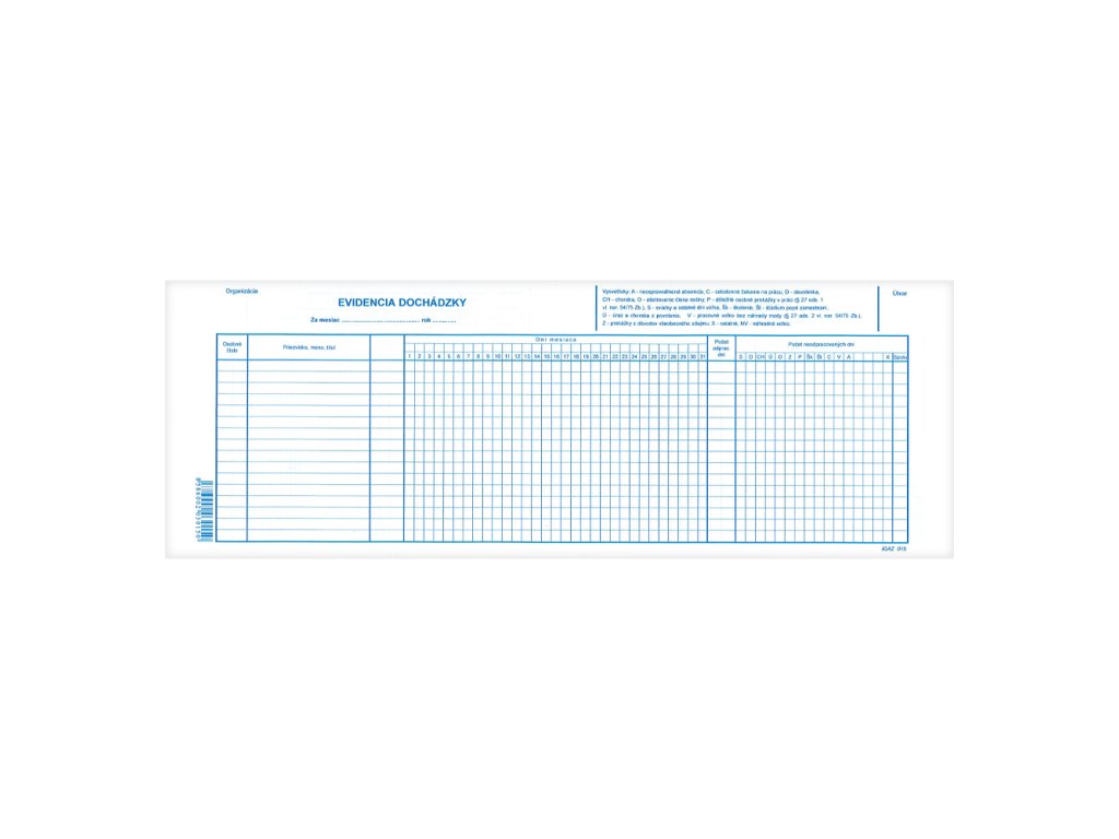 Evidencia dochádzky 42 x 15 cm (15)Dodatočné parametre