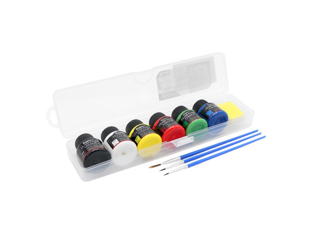 Farby na sklo 25 ml, sada 6 farieb + štetce v plast. boxe