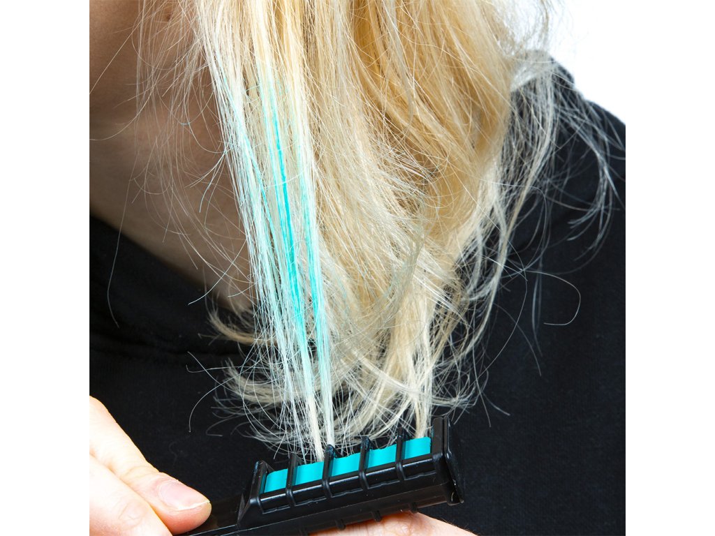 Len jeden ťah hrebeňom stačí na zafarbenie prameňov vlasov v intenzívnej farbe, ktorá zmizne po niekoľkých umytiach.