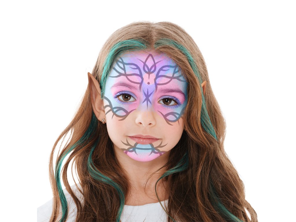 Farby na tvár a uši elfa (škriatka) na karneval alebo Halloween párty.