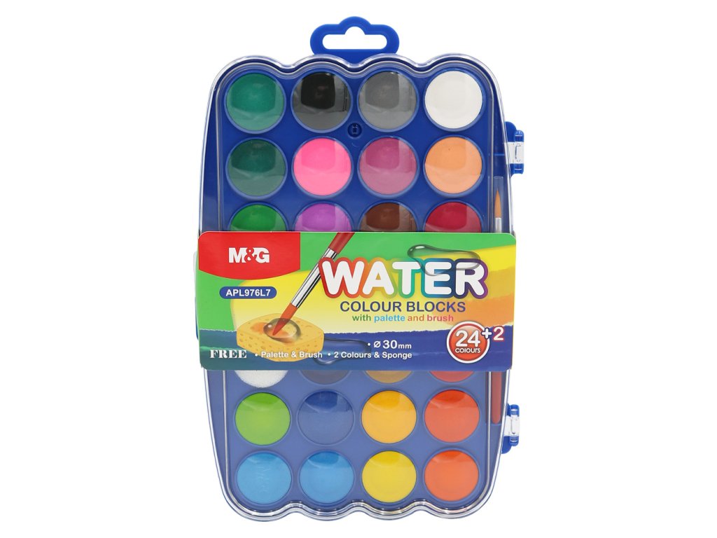 Farby vodové 24+2 farieb (30 mm) + paletka a štetec