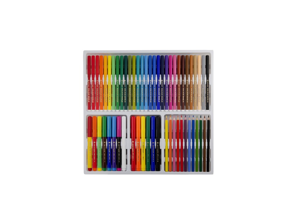 Kreatívna 60 ks sada pre malých umelcov. Sada obsahuje 30 ks Colour World popisovačov s vyprateľným atramentom. 7 ks prefarbiteľných fixiek Magic a 1 ks zmizík. 6 ks Maxi popisovačov so supervyprateľným atramentom. 12 ks farebných ceruziek. 4 ks omaľovánky.Dodatočné parametre