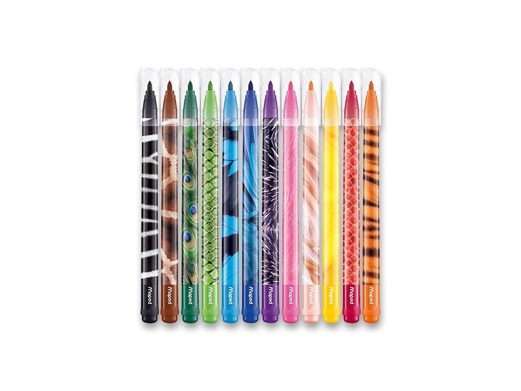 Súprava 12 farebných fixiek Maped Color'Peps vo veselých farebných kombináciách s roztomilými zvieracími motívmi.
