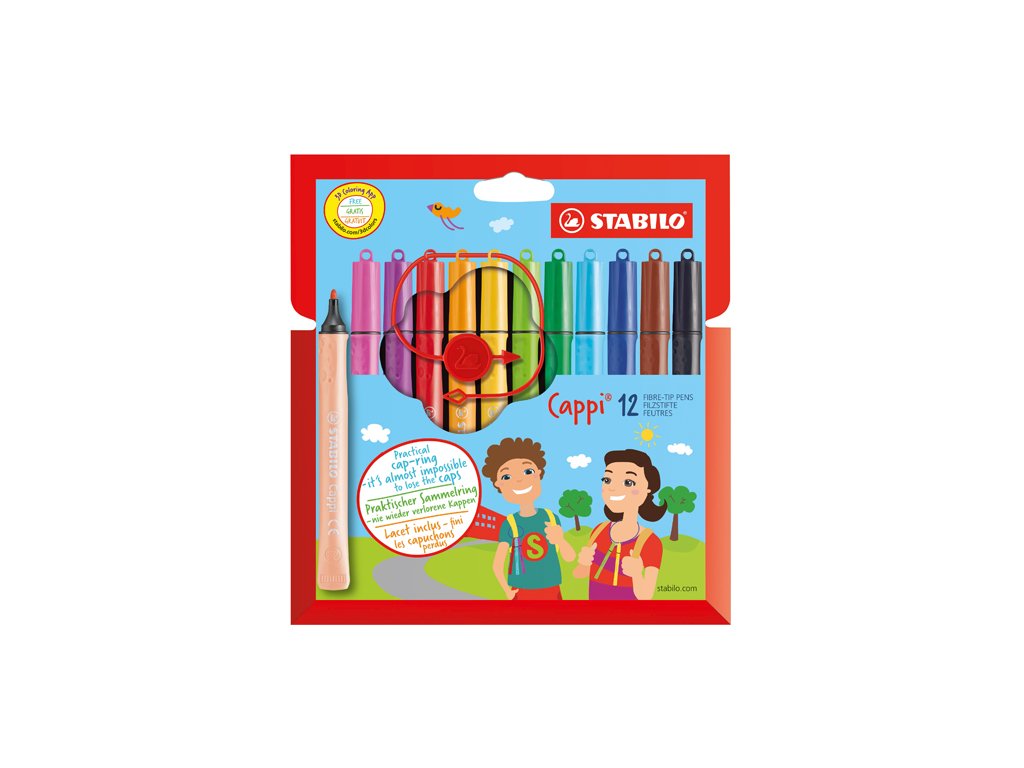 Fixy vláknové s krúžkom na vrchnáčik STABILO Cappi 12 ks