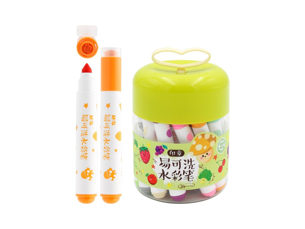 Detské fixy s pečiatkou umiestnenou vo vrchnáku s motívami ovocia.