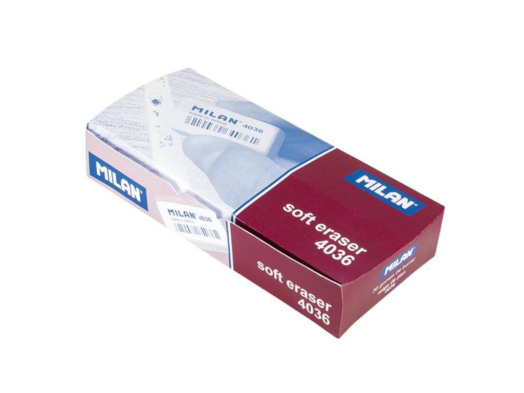 Obdĺžniková guma MILAN 4036 z flexi syntetickej gumy. Môže byť použitá na mazanie grafitových ťahov ceruzkou zo všetkých druhov papiera. Farba biela.Dodatočné parametre