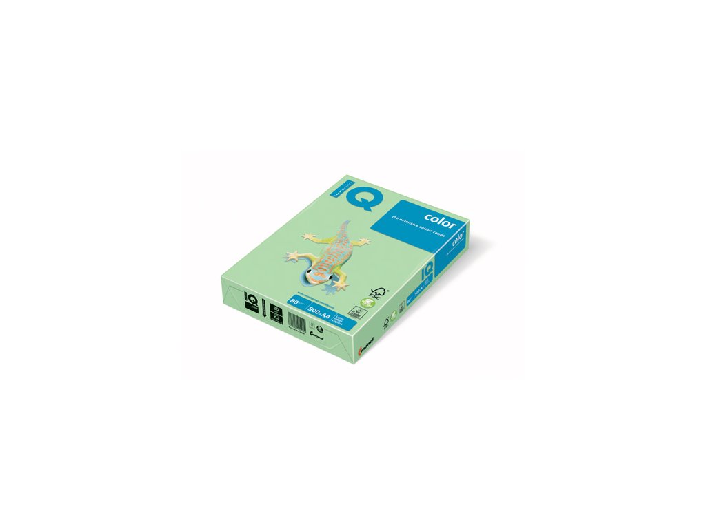 Farebný kancelársky papier IQ color je ideálny pre vnútrofiremnú komunikáciu s možnosťou farebného odlíšenia jednotlivých dokumentov, ako aj obchodnú korešpondenciu a prezentácie. Poskytuje výborné výsledky pri obojstrannom kopírovaní a tlači vo vysokorýchlostných kopírkach a tlačiarňach. Formát A4. Plošná hmotnosť 80 g/ m2. Balenie 500 hárkov. Farba stredne-zelená.Dodatočné parametre