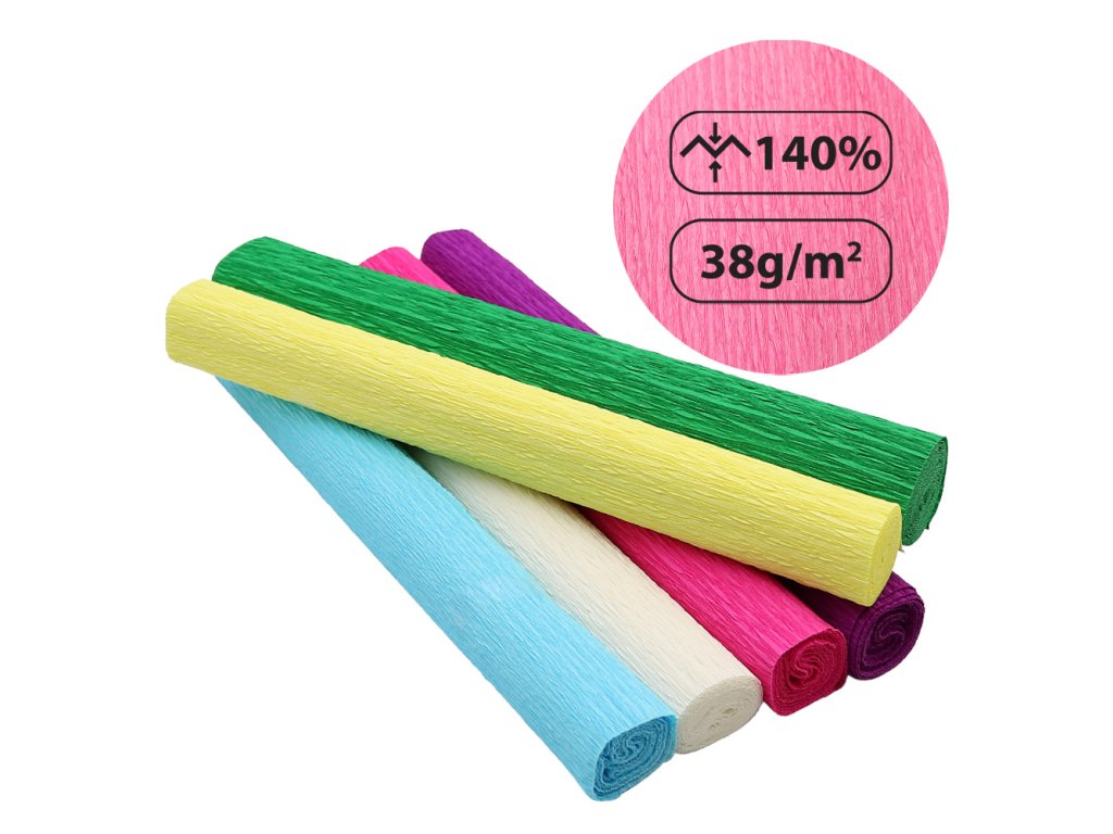 Krepový papier s hrubšou štruktúrou vhodný na tvorbu kvetov, školské práce, dekoračné a aranžérske účely.