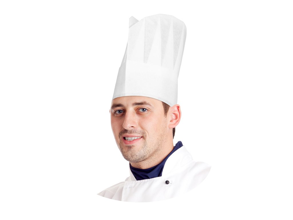 Kuchárska čiapka papierová, biela 23 cm [10 ks