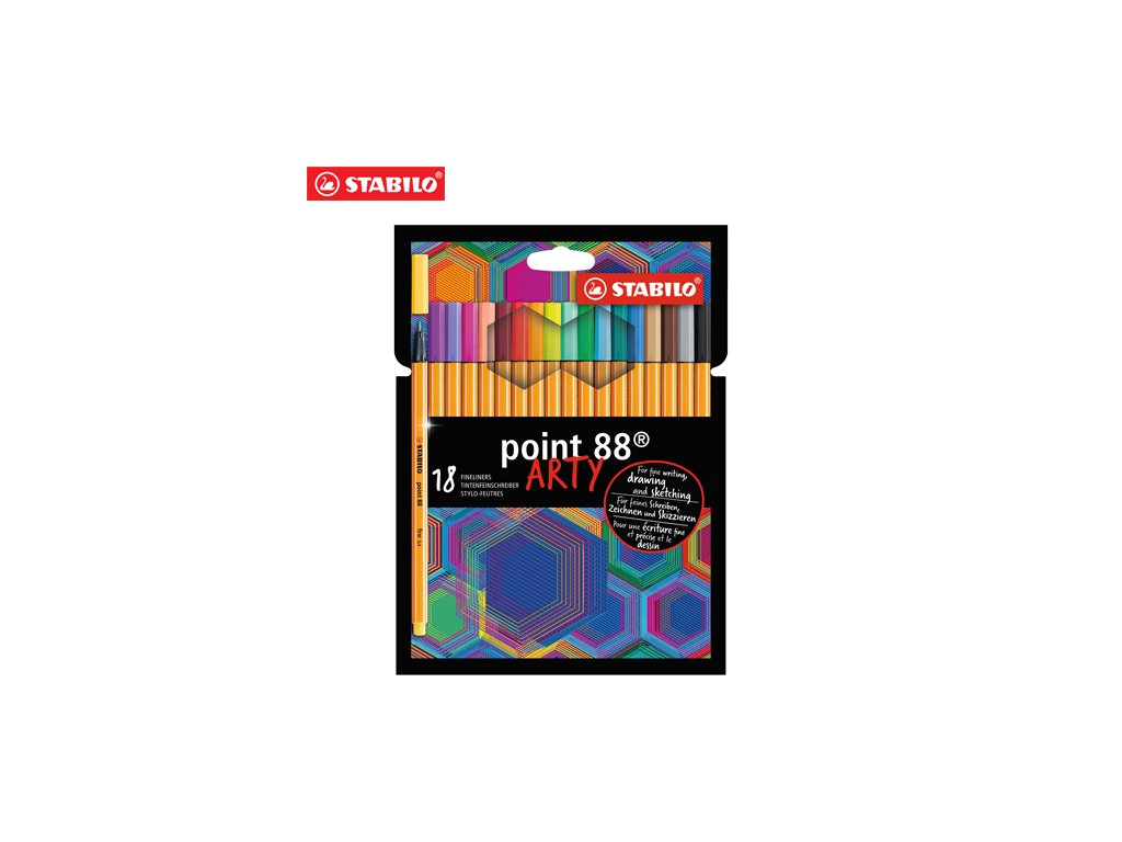 Najštýlovejšie liner vôbec. 18-kusová sada STABILO point 88 ARTY, mix základné a neónové farby. Stopa šírky 0.4 mm ti poskytne kontrolu a presnosť. Odolný hrot zaručí dlhé písanie. Pri kreslení môžeš vytvoriť tie najjemnejšie detaily, pri písaní môžeš písať naozaj malé písmenká. Perfektný pre prácu s pravítkom, rysovanie, presnú prácu a na farebné štruktúrovanie textu a poznámok, skrátka všestranný pre každú situáciu.Dodatočné parametre