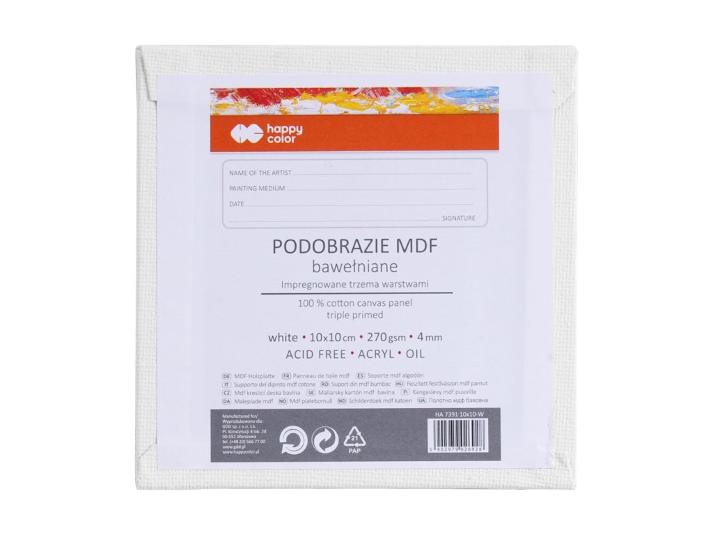 Maliarske plátno Happy Color 10x10 cm MDF 4 mm - biele