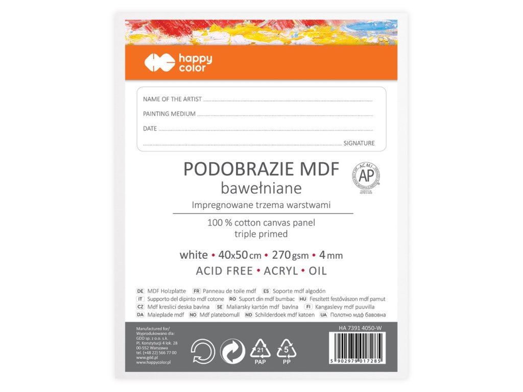 Maliarske plátno Happy Color 40x50 cm MDF 4 mm - biele