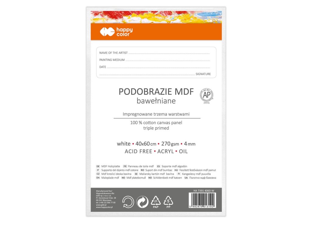 Maliarske plátno Happy Color 40x60 cm MDF 4 mm - biele
