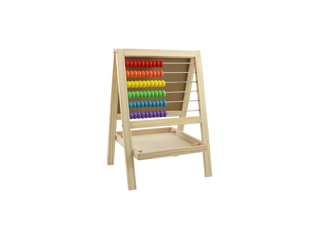 Edukačná pomôcka pre najmenšie ratolesti pozostáva z bielej magnetickej tabule na jednej strane a farebným počítadlom na strane druhej + odkladací priestor na magnetické písmenká, čísla.