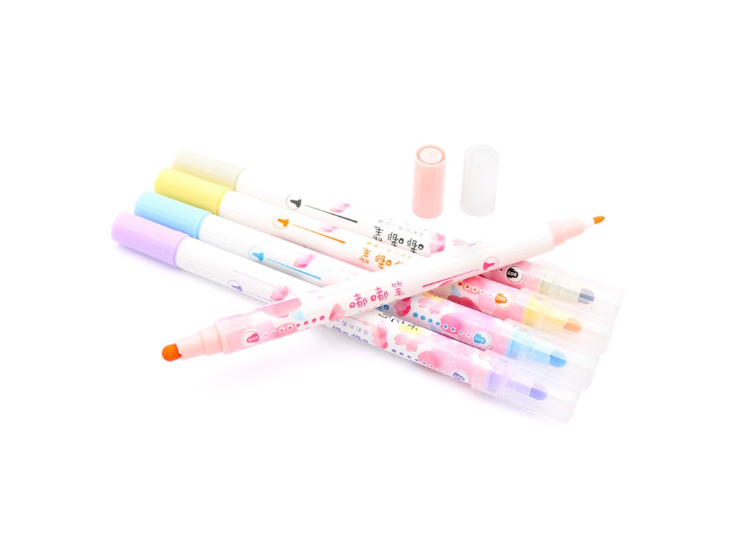 Obojstranný popisovač na vodnej báze. Kolekcia: Sakura. Sada obsahuje 5 ks - čiernu, oranžovú, modrú, fialovú a žltú farbu.Dodatočné parametre