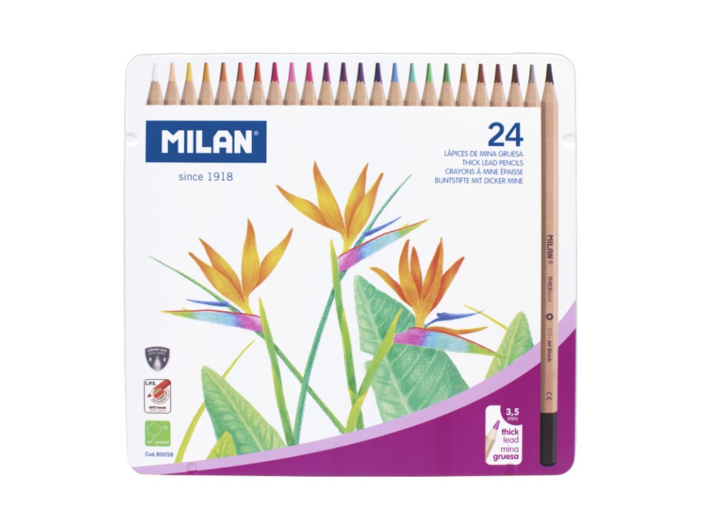 Šesťhranné farebné pastelky so silnou tuhou o priemere 3,3 mm. Pastelky s ochranným systémom LPS (lead protection system), ktorý zvyšuje odolnosť proti lámaniu. Drevo pochádza z trvalo udržateľných lesov. Sada obsahuje 24 farieb, prírodná drevená povrchová úprava. Balené v plechovom boxe, vďaka čomu sú vhodným darčekom.Dodatočné parametre