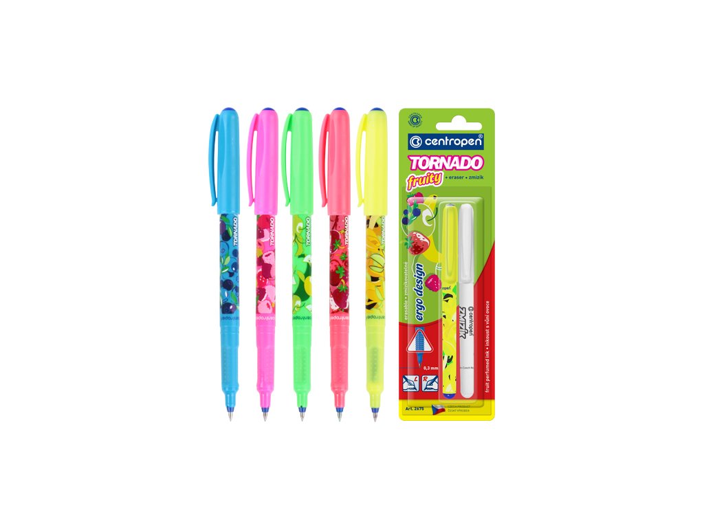 Pero guľôčkové CENTROPEN 2675/2 Tornado Fruity + zmizík, blister