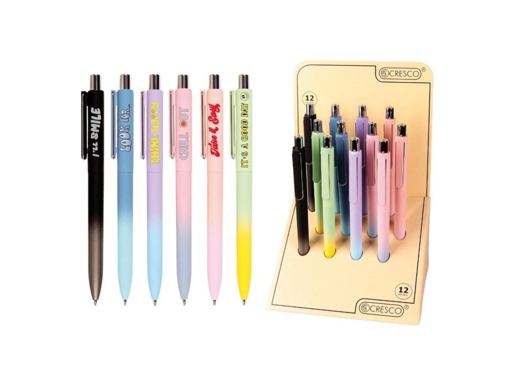 Guľôčkové pero s telom v gradientných pastelových farbách príjemného na dotyk.