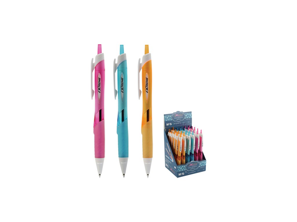 Guľôčkové pero s plastovým telom v 3 farbách a priehľadnou časťou na kontrolu atramentu.