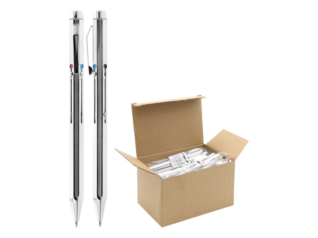 Celokovové strieborné pero s vymeniteľnými mini náplňami s dĺžkou 67mm modrej, červenej, zelenej a čiernej farby. Šírka hrotu 0,5 mm. Náhradná náplň, kód: 0532 B, 0532 E, 0532 R, 0532 G.Dodatočné parametre