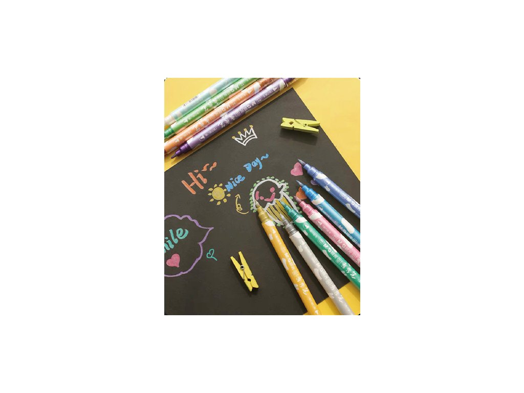 Obojstranné kreatívne popisovače, ktorých hroty umožňujú jednoduché farbenie, kreslenie, skicovanie a tieňovanie.