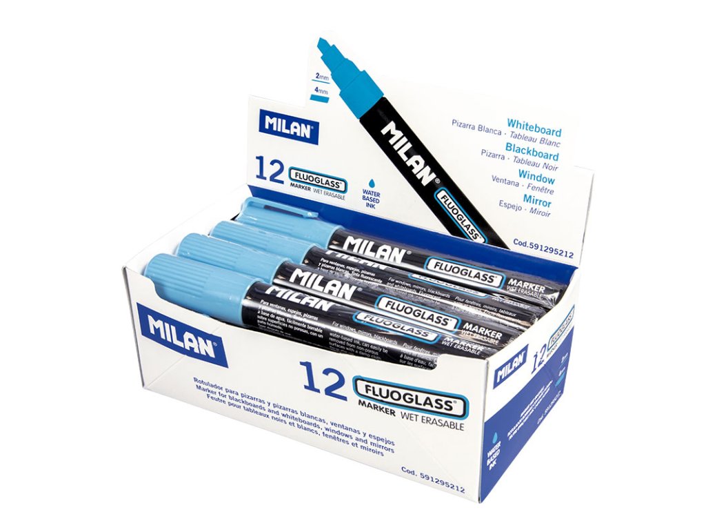 Popisovač MILAN FLUOGLASS 2-4 mm, modrý