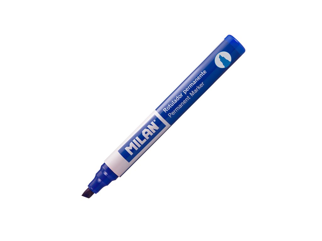 Popisovač s permanentným atramentom na alkoholovej báze, s klinovým hrotom šírky 1-4 mm. Určený na písanie na neporézne materiály, plasty, sklo, gumu, kožu, kovy. Farba: modrá.Dodatočné parametre