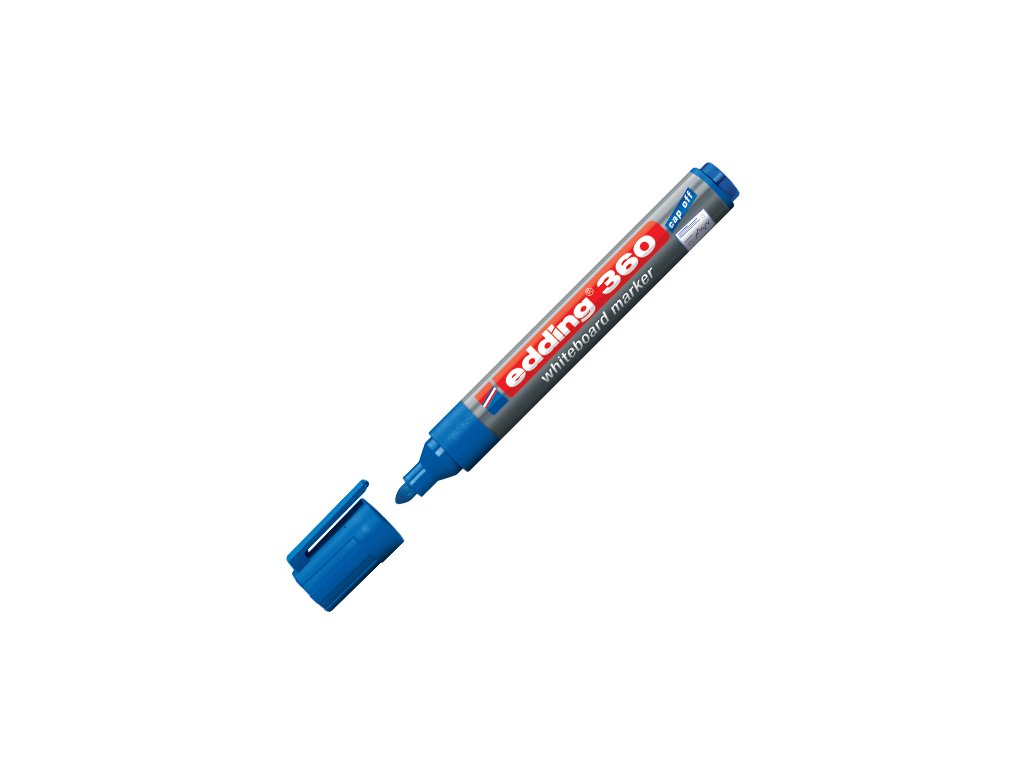 Popisovač na biele tabule - Edding 360 modrý s okrúhlym písacím hrotom strednej hrúbky. Za sucha stierateľný z neporóznych povrchov. Bez uzáveru nevyschne po dobu niekoľkých dní. Opätovne naplniteľný atramentom edding BTK 25. Vymeniteľné písacie hroty. Šírka stopy: 1,5-3 mmDodatočné parametre