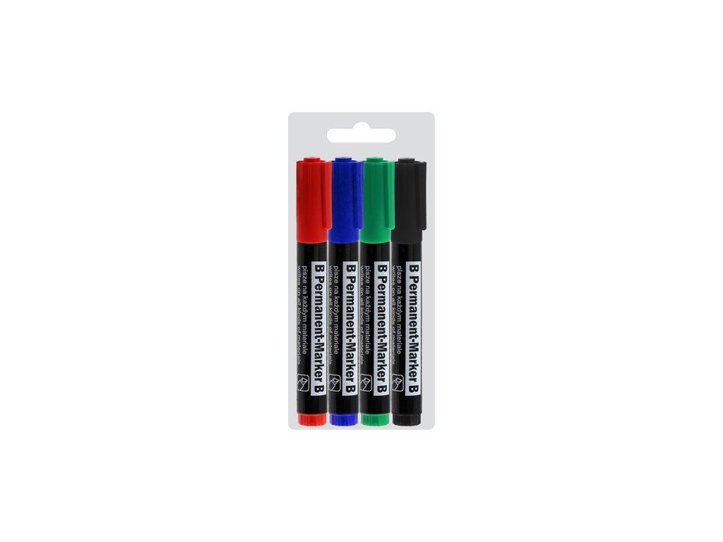 Sada 4 ks permanentných popisovačov na alkoholovej báze s klinovýn hrotom. Priemer hrotu je 5 mm a šírka stopy 2,5 mm. Vhodný na rôzne typy povrchov:papier, guma, drevo, sklo, CD,DVD, kovy, fólia.Dodatočné parametre