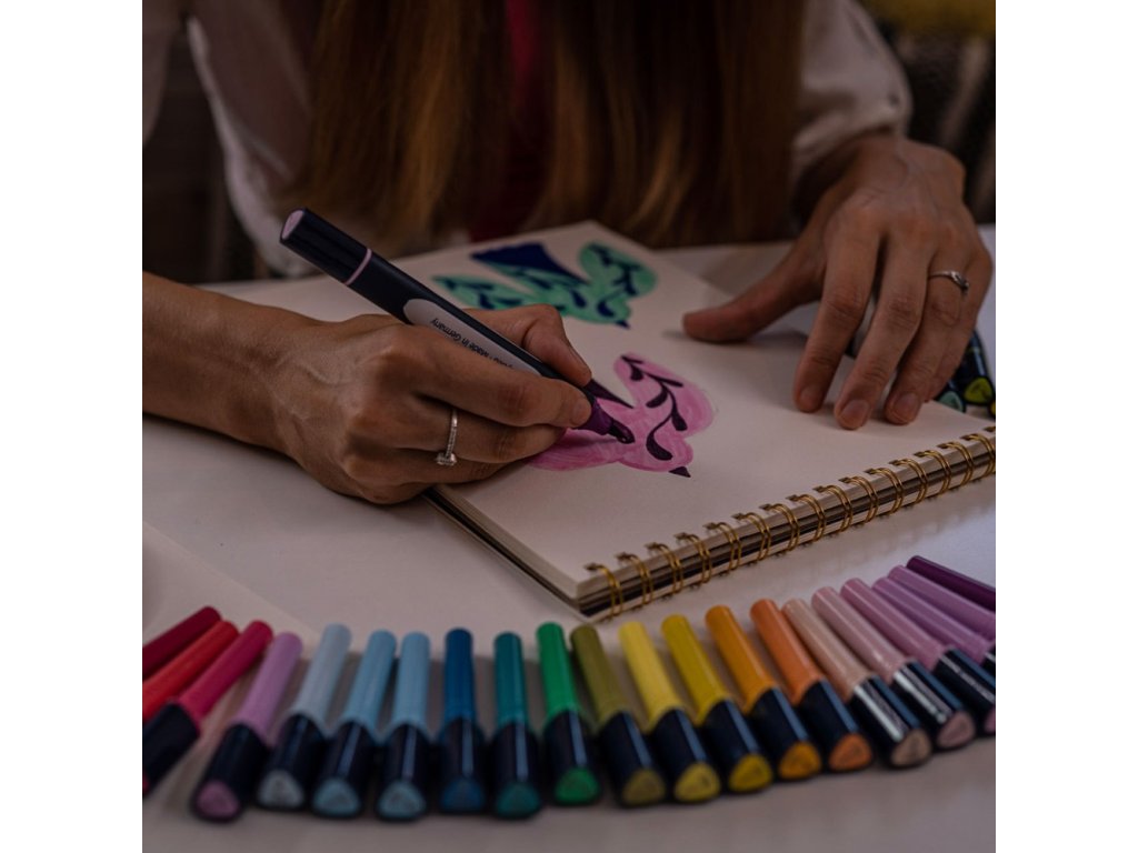 Inovatívny obojstranný popisovač s mäkkým štetcovým hrotom /tenkým kužeľovým hrotom (1 mm) ideálny na farbenie, písanie písmen a mnoho ďalších kreatívnych techník.