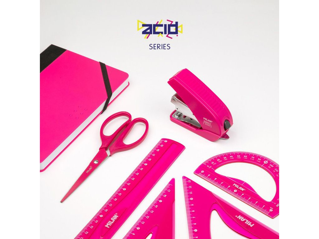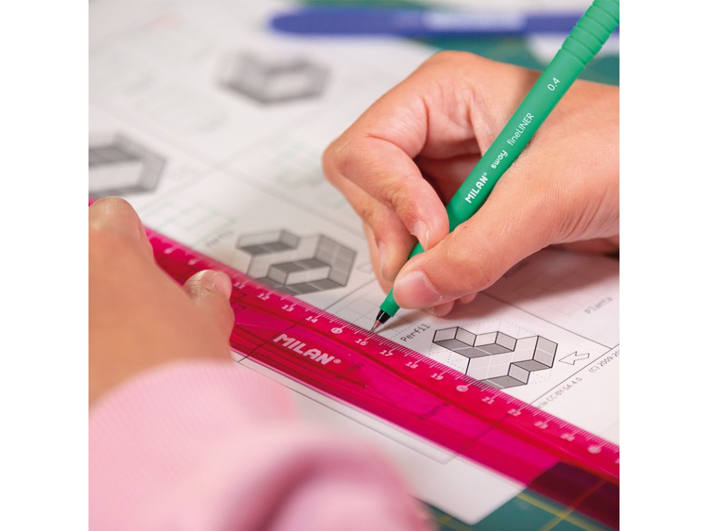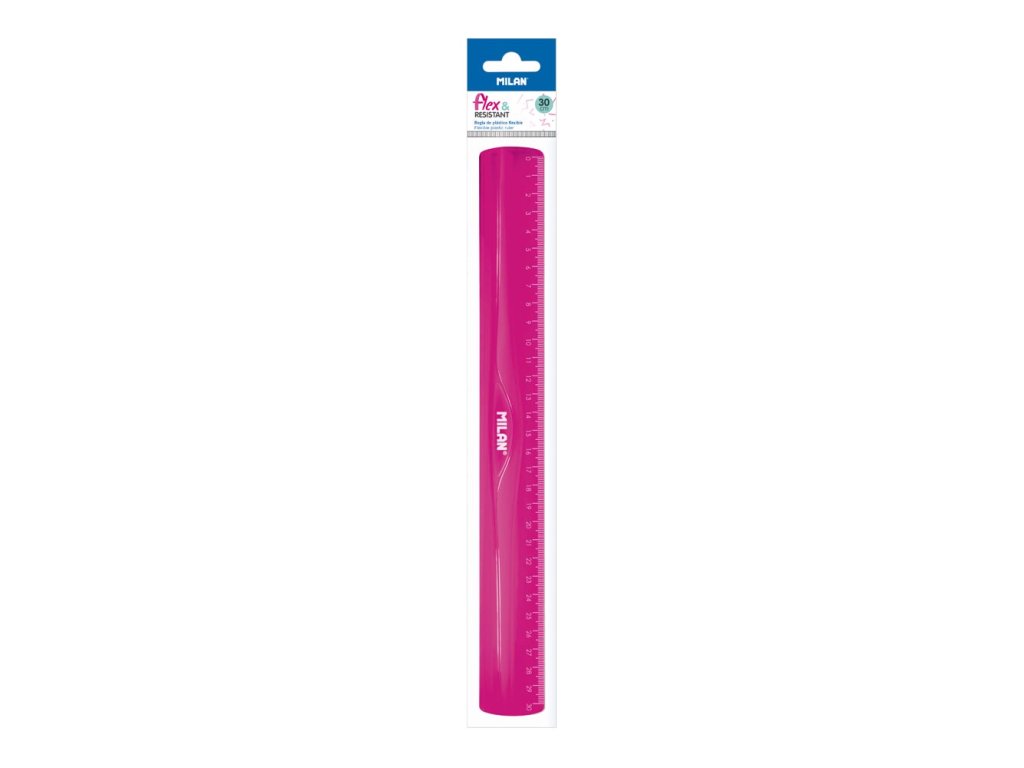 Ohybné pravítko MILAN FLEX. Dĺžka 30 cm. Farba: transparentná ružová. Flexibilný a odolný materiál.Dodatočné parametre