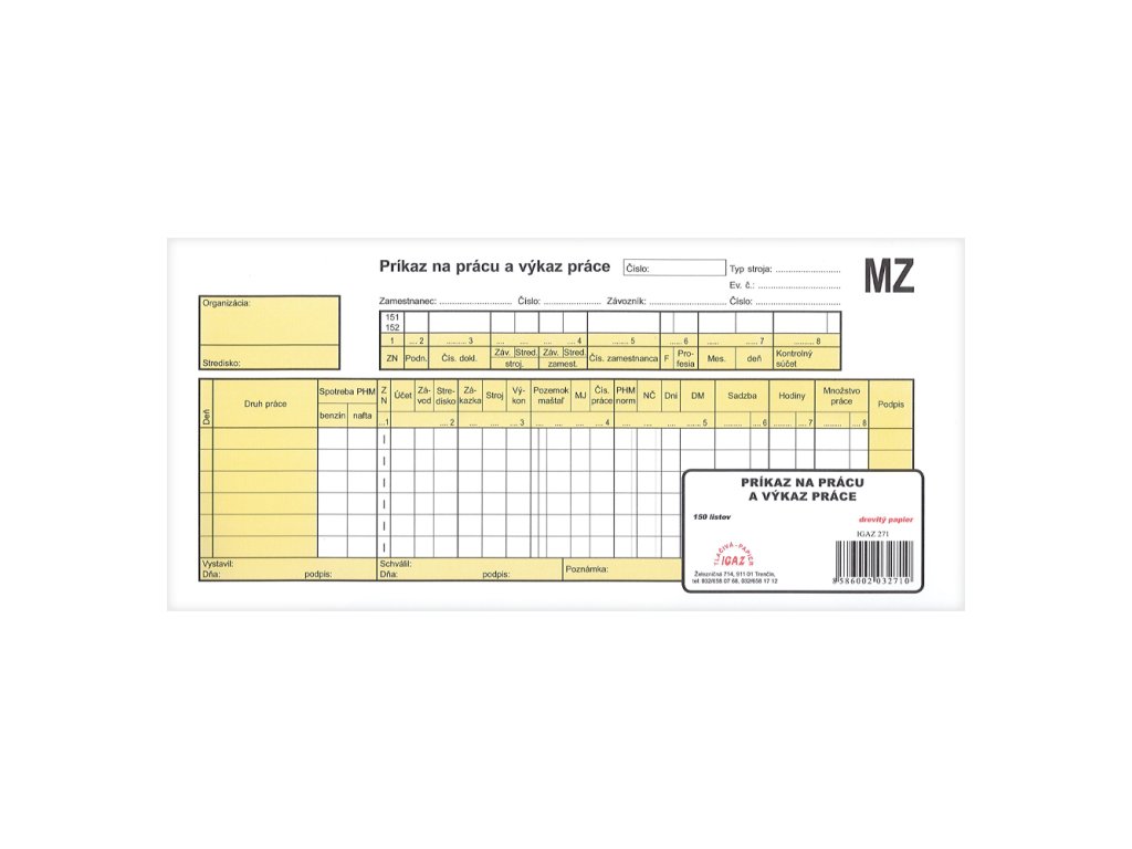 Príkaz na prácu a výkaz práce, 150 listov (271)