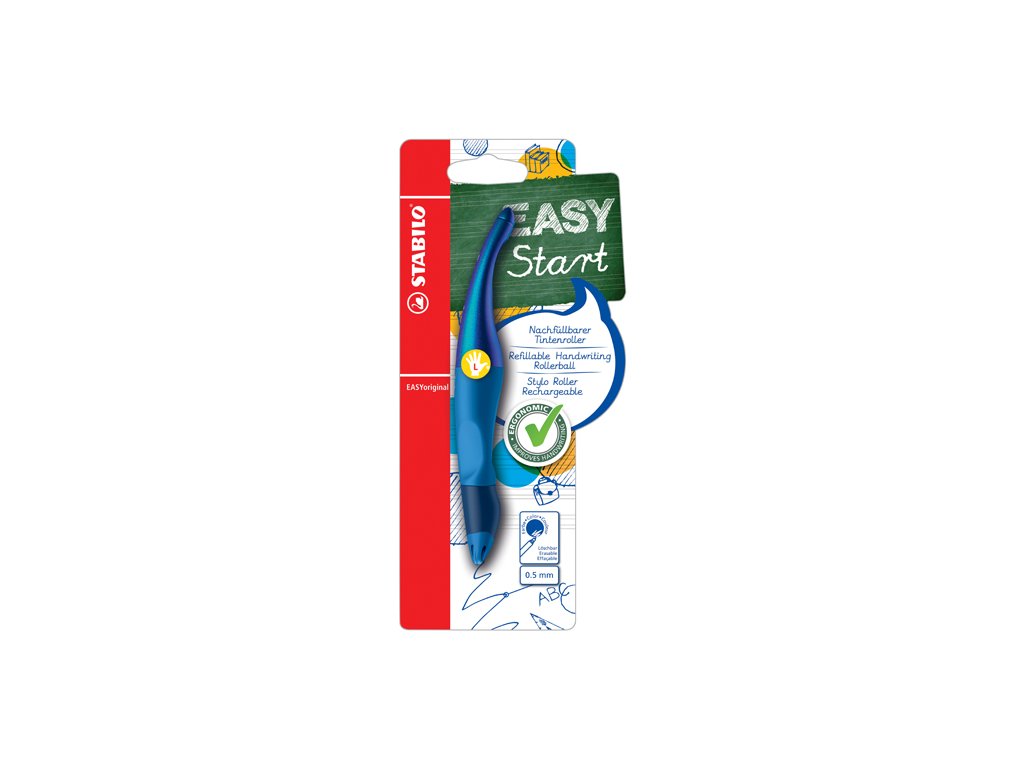 Roller guľôčkový STABILO EASYoriginal Holograph. Ergonomický dizajn, určený pre ľavákov. Uvoľnené držanie pomáha proti únave svalstva ruky a následnej bolesti v ruke pri písaní. Ľahko kĺže po papieri, čisté písanie bez machúľ. Šírka stopy rolleru 0,5 mm. Farba pera: holografická modrá. Náplň: modrá.Dodatočné parametre