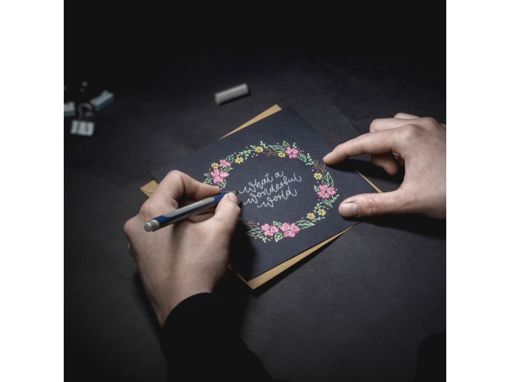 Ideálne na ručné kreslenie, scrapbooking, blahoželania a pozvánky, pôsobivé výsledky aj na iných hladkých a nesavých povrchoch.