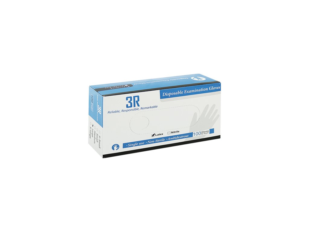 Rukavice latexové biele, púdrované, dodávané v balení po 100 ks. Veľkosť: L.Dodatočné parametre