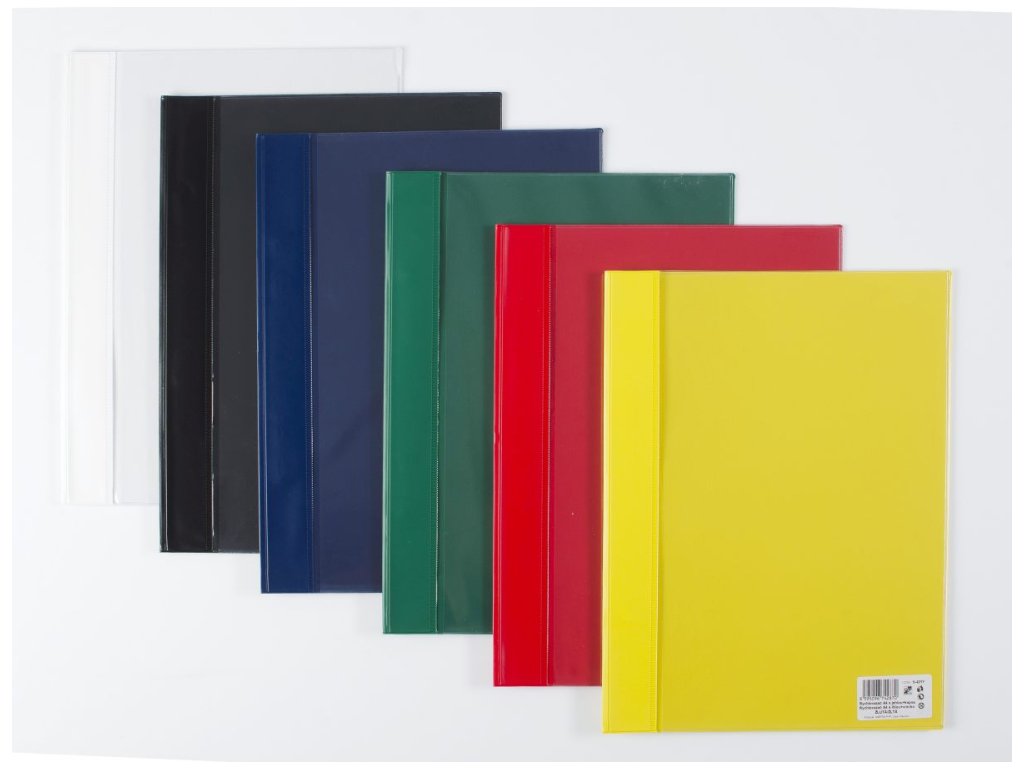 PVC dosky s rýchloviazačom, priehľadným predným vreckom na vloženie letáku a pevnou zadnou stranou.
