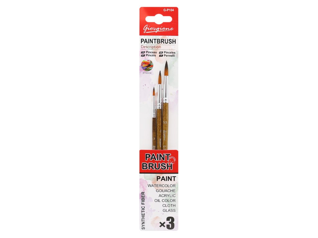 Sada guľatých štetcov (3 ks) na blistri