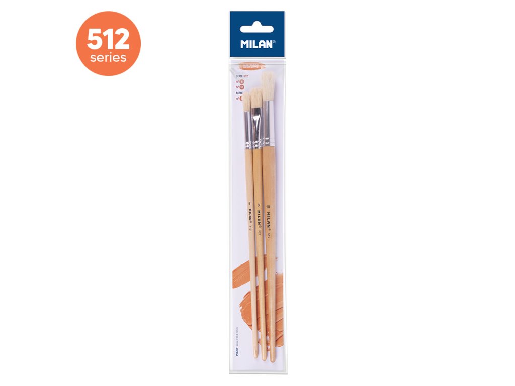 Sada 3ks štetecov MILAN z prírodných štetín s vysokým stupňom pevnosti, vyznačujúce sa trvanlivosťou a odolnosťou. Používajú sa predovšetkým pre olejomaľbu. Vhodný pre prácu s hustou textúrou či farbou. 512 séria (veľkosť 6 a 10) + 522 séria(veľkosť 8).Dodatočné parametre