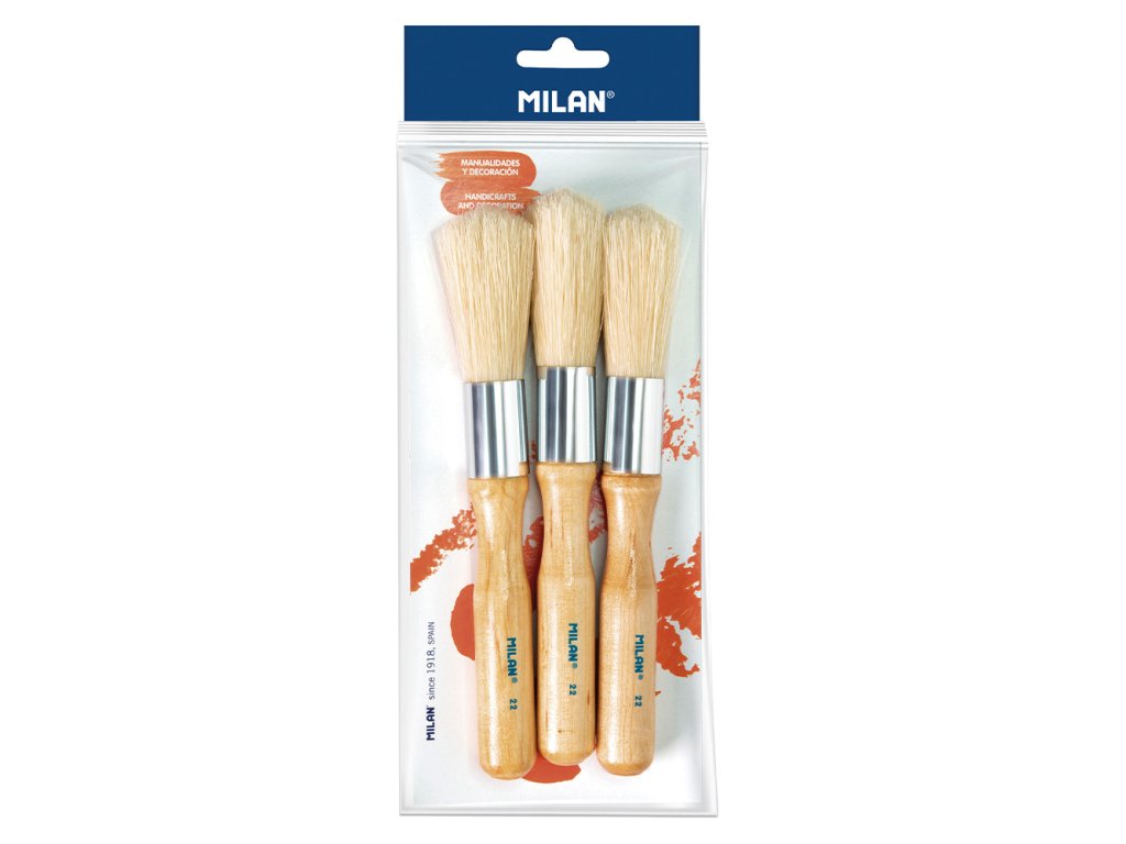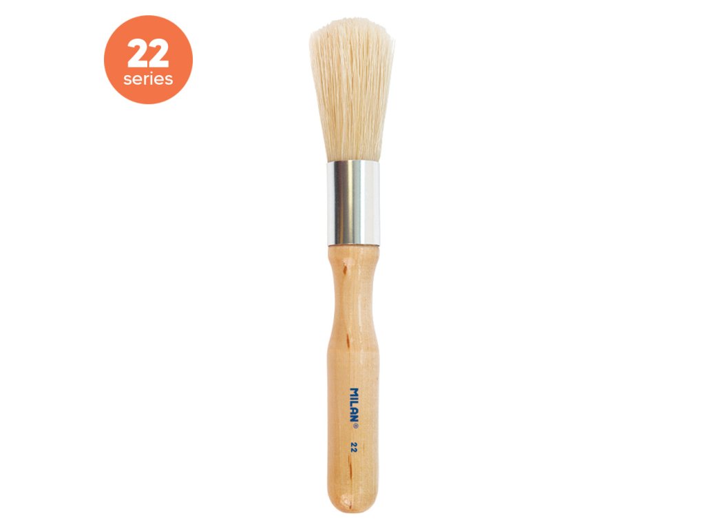 Okrúhly štetec MILAN 22 s dlhými, tupými štetinami. Hnedá lakovaná povrchová úprava a hliníková dutinka. Zloženie: prírodná štetina ošípaných Chungking. Vhodné na ručné práce a dekoráciu. Priemer štetín: 16,6 mm. Dĺžka štetín: 46,6 mm. Dĺžka štetca: 155 mm.Dodatočné parametre