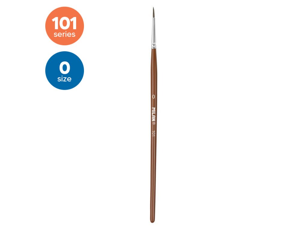 Guľatý štetec č. 0 z prírodného pony vlasu, s hnedou lakovanou rukoväťou z dreva so strieborným bezošvým kovaním, je vďaka jemnosti vlákna vhodný najmä pre použitie v školách na maľbu akvarelovými a temperovými farbami. Dĺžka vlasu 7,5mm. Priemer 2mm.Dodatočné parametre