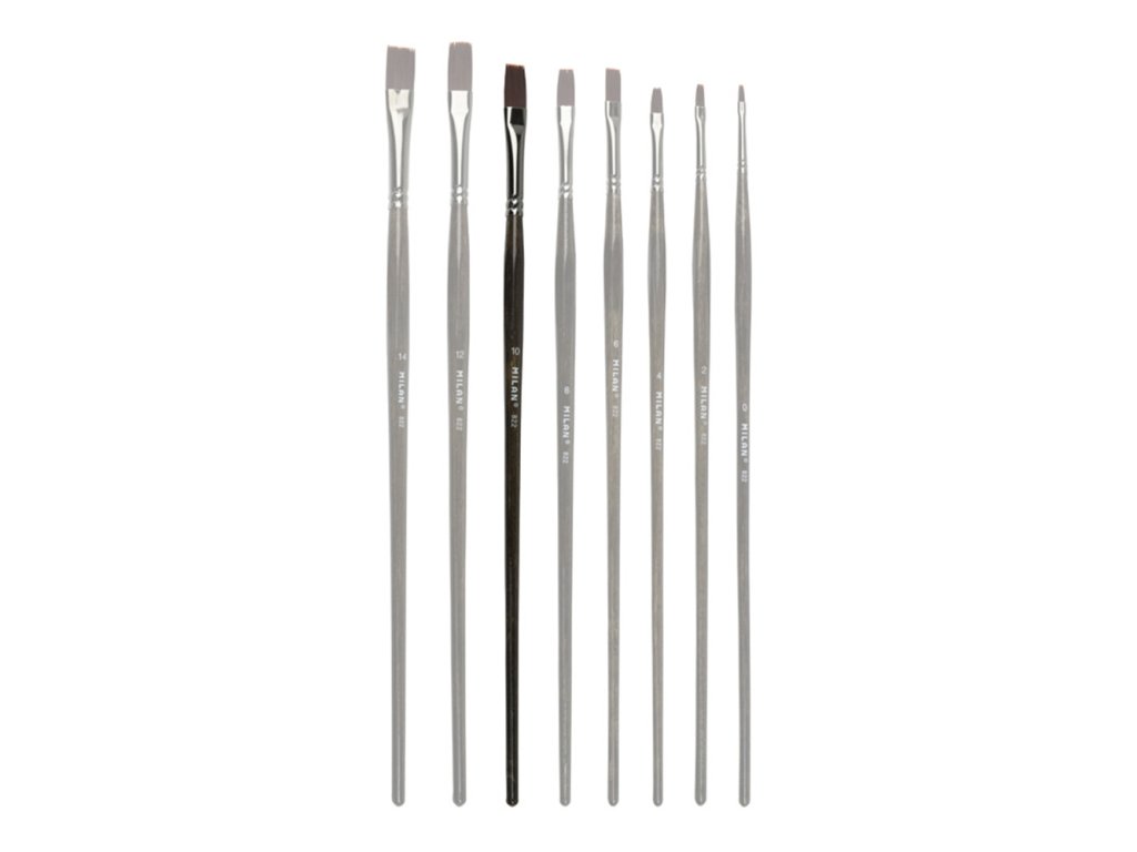 Plochý štetec MILAN 822 s dlhou ergonomickou drevenou rukoväťou. Orechová lakovaná povrchová úprava a niklová objímka. Zloženie: syntetické štetiny (vlákna O 0,20 mm). Vhodný na maľovanie olejom a akrylom. Priemer štetín: 10,1 mm. Dĺžka štetín: 18 mm. Dĺžka štetca: 313 mm.Dodatočné parametre